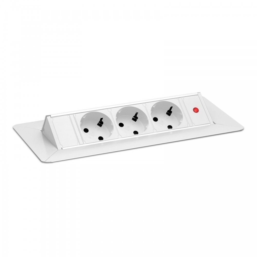Süllyeszthető elosztó irodai és otthoni felhasználásra, ezüst felülettel, 3 db gyermekvédelemmel ellátott aljzattal. Asztala, bútora legyen mindig elegáns és rendezett, mégis funkcionális. A rejtett elosztó kiváló megoldás lehet ha már például kész konyhával rendelkezik, de nincs elegendő konnektor a kívánt helyen. Ilyenkor falvésés és villamos hálózat bővítés nélkül, remek alternatíva lehet egy rejtett elosztó. Egy mozdulat és máris rendelkezésre áll 3 szabad konnektor. Ideális lehet olyan elektromos eszközökhöz, amit nem folyamatosan használunk, kenyérpirító, vízforraló... Ha használaton kívül vannak, az "flip-up" elosztó egy mozdulattal elrejthető, ezzel is megkönnyítve például a takarítást, valamint rendezett, letisztult külsőt ad a helységnek.