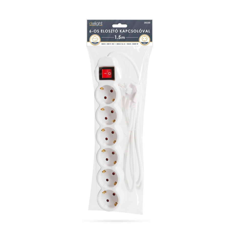 Delight 6-os elosztó 1,5 m kapcsolóval