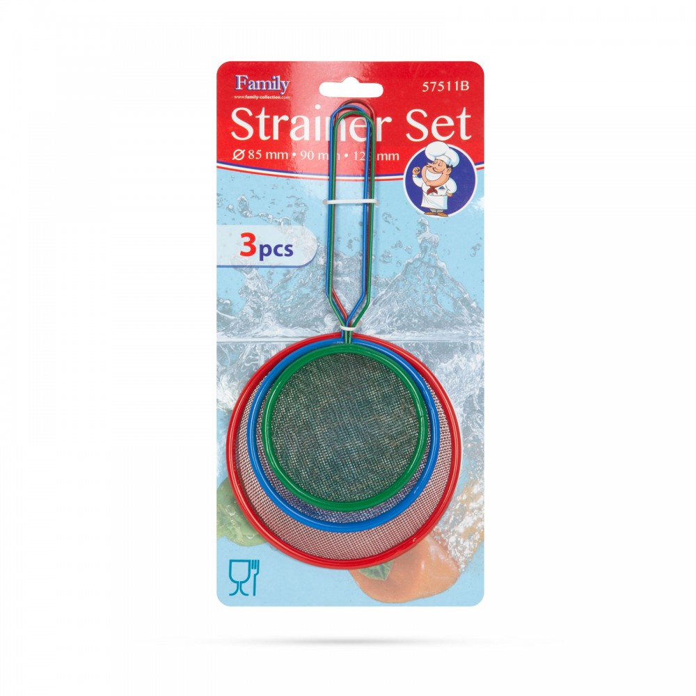 Általános, háztartási fém szűrőszett, 3 különböző méretű szűrővel. Nem alkalmas üzemanyag és egyéb vegyi anyag szűrésére.