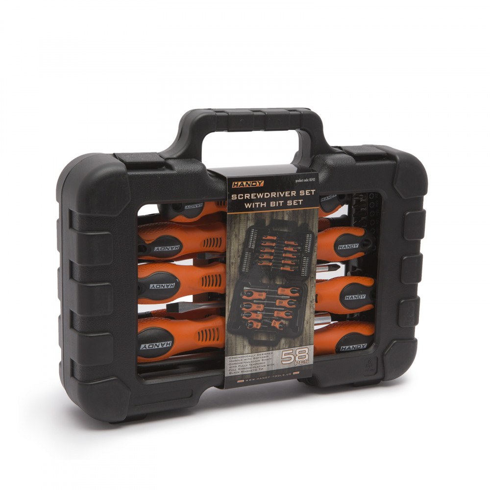 Ezzel a sok darabos csavarhúzó készlettel felülemelkedhet bármilyen problémán, legyen szó akármilyen csavarfejről, ebben a szettben megtalálja a hozzávaló bitfejet. Az ergonomikus, gumírozott markolat megfelelő fogást biztosít. A különböző méretű csavarhúzóknak köszönhetően kis helyeken is könnyen elvégezheti munkáját. A praktikus hordtáska rendezett tárolást és hordozhatóságot biztosít.