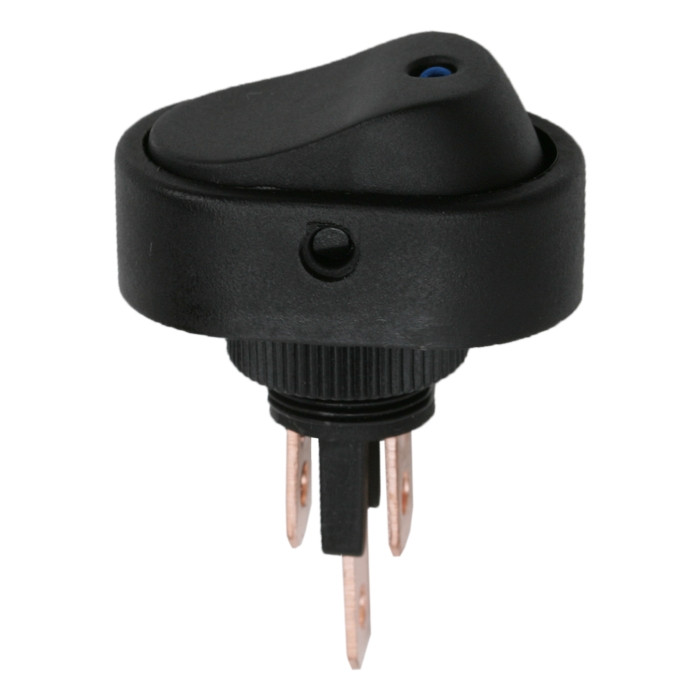 Beépíthető fekete billenőkapcsoló leddel. Széles körben használt, ideális lehet autóban, elektromos eszközök kezelőpanelján. A visszajelző lednek köszönhetően könnyen megállapítható a kapcsoló státusza.