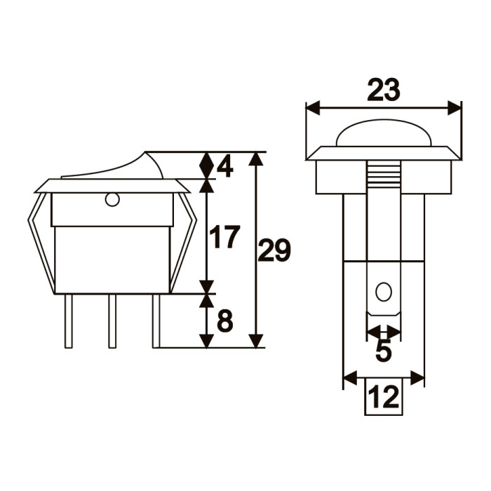 Széles körben alkalmazott kör alakú, fekete billenőkapcsoló. Felkapcsolt állapot jelzéséről sárga visszajelző LED gondoskodik, így távolról is ellenőrizhető a kapcsoló állapota. Ideális felhasználási terület: elekromos gépekbe, berendezésekbe, gépjárművekbe történő beépítése.