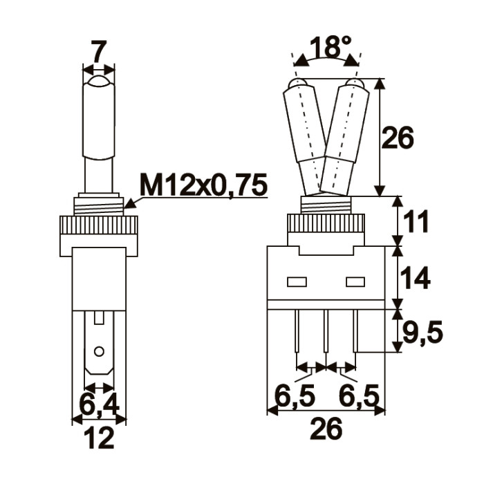Karos kapcsoló, a kar végén sárga LED-del, amely kiválóan alkalmassá teszi elektromos eszközökbe, járművekbe történő beépítését. A kapcsoló állapota a visszajelző sárga LED-nek köszönhetően könnyen megállapítható. 20 A-ig terhelhető.