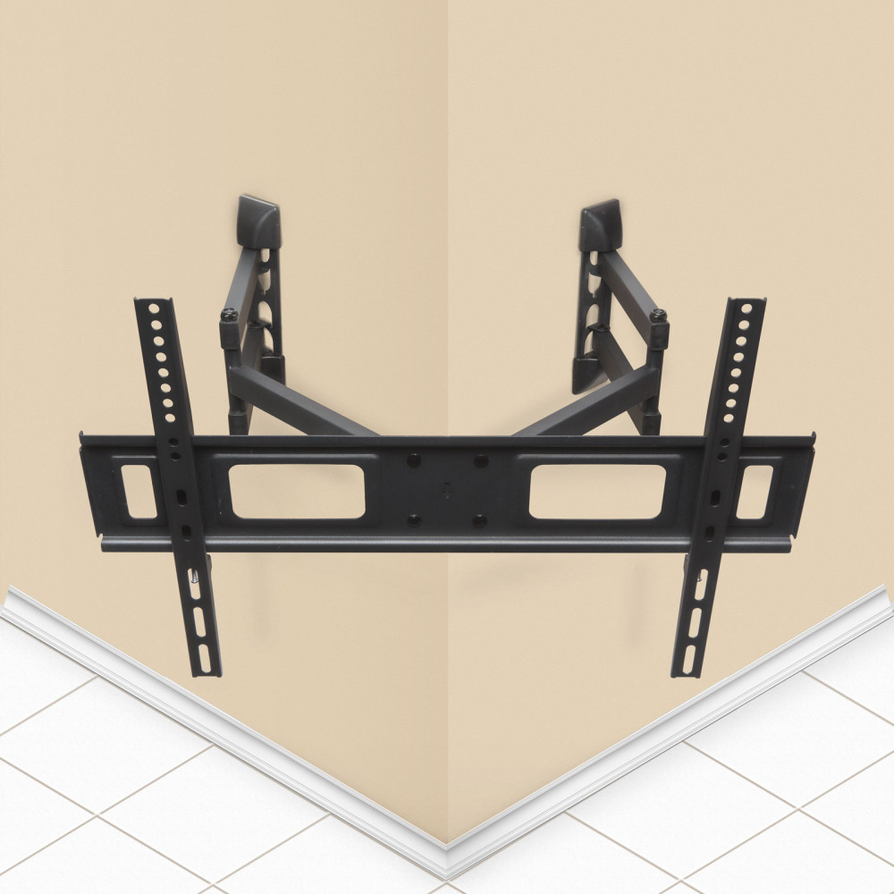 Fali tartókonzol TV-k, monitorok és egyéb VESA konzol kompatibilis eszközök rögzítéséhez. A szétnyitható tartókaroknak köszönhetően a sarkot vagy faltörést alkotó két falra is rögzíthető, legyen az belső vagy akár külső sarok. A TV a sarokban történő rögzítést követően is forgatható, dönthető marad. A masszív, erős tartás és a speciális helyekre történő rögzíthetőség érdekében dupla karral ellátott.