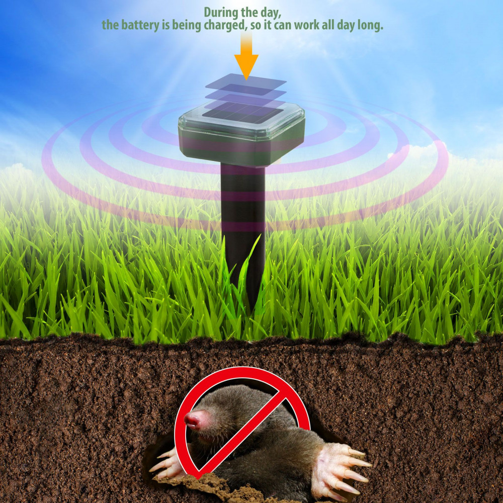 Gondoskodjon róla, hogy kertjében ne legyenek kártevők. Ez a leszúrható szolár kártevő riasztó ultrahangos jeleket bocsát ki a föld felszíne alatt is, amely a rágcsálók kifinomult hallását kihasználva elriasztja őket. Használatával nincsen szükség - a környezetre káros - vegyszeres kártevő riasztásra, irtásra. Kiválóan alkalmas vakondok, pockok, egerfélék távoltartására.