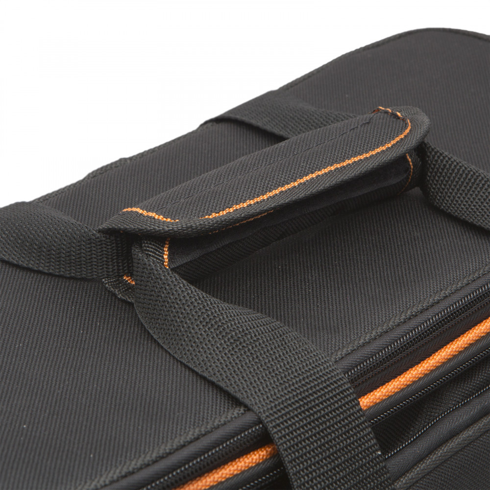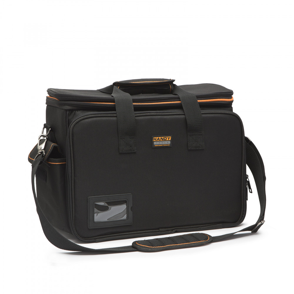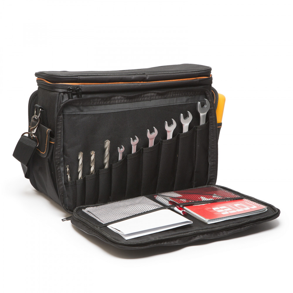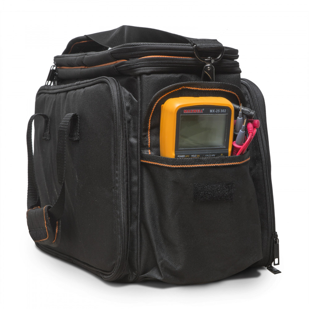 Többcélú (szerszámos-, fotós, utazótáska stb.) felhasználási lehetőséggel rendelkező táskánk újdonságnak számít a piacon. Oldalmerevítéses nagy belső tere 3 fix zsebbel, ill. egy kihajtható 3 zsebes füllel rendelkezik. Dupla cippzáras, kétszintű fedele belül hálós. Mindkét hosszanti oldala lecippzározható, zsebekkel, hálóval, rögíztő gumikkal ellátott biztosítva a még sokoldalúbb felhasználást. Rövidebb oldalain tépőzáras, mély zsebek. Akár kézben, akár vállon hordozásra is alkalmas, állítható vállpánttal.