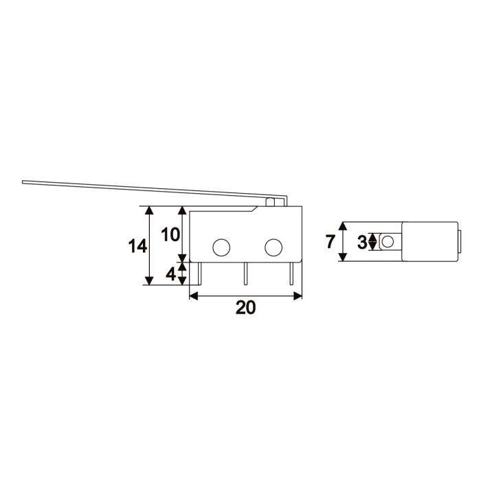 Mikrokapcsoló karos *MINI* (on-(on) • 1ák • 5(2)A-250V)