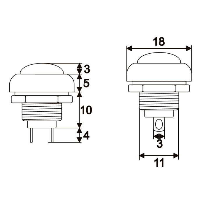 Kör alakú, egykörös nyomógomb. Alaphelyzetben nyitott állapotban van, megnyomva a gombot zárjuk az áramkört.