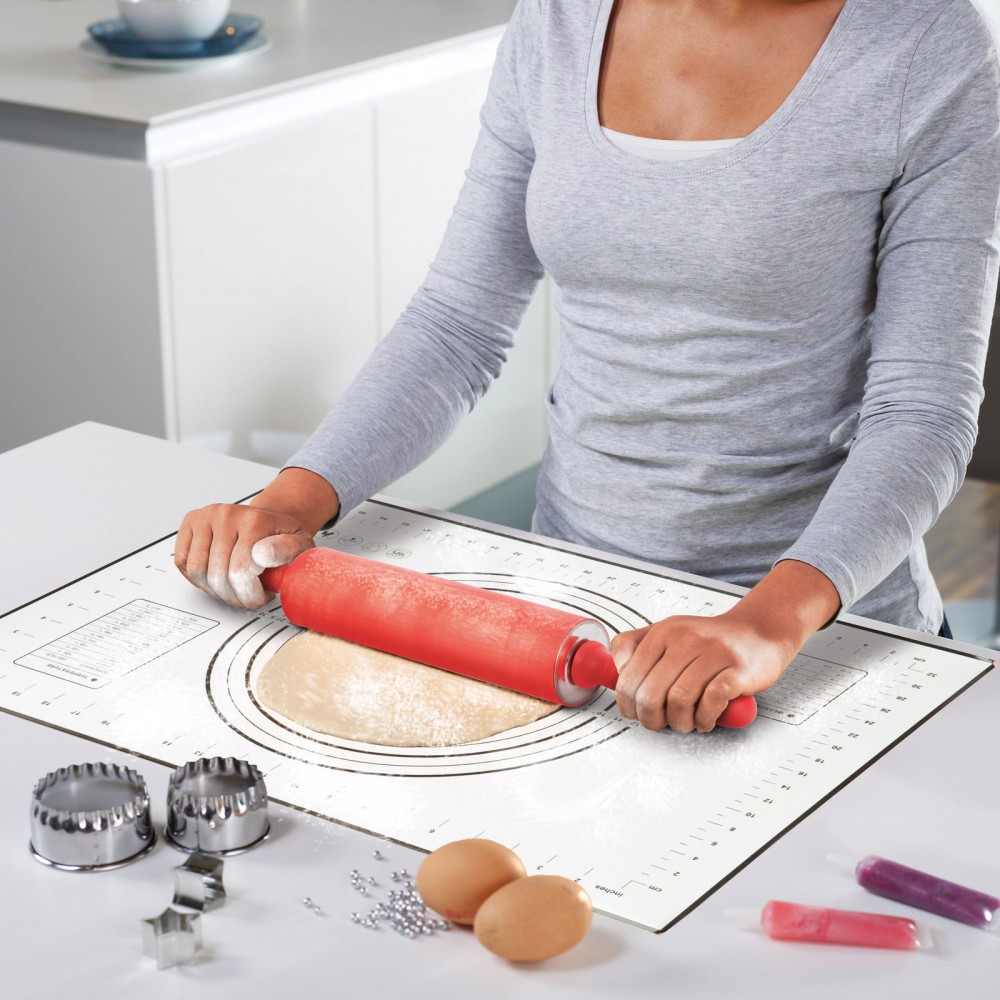 - A nyújtólap hőálló szilikonból készült, ezért sütőlapként is használható 260°C-ig