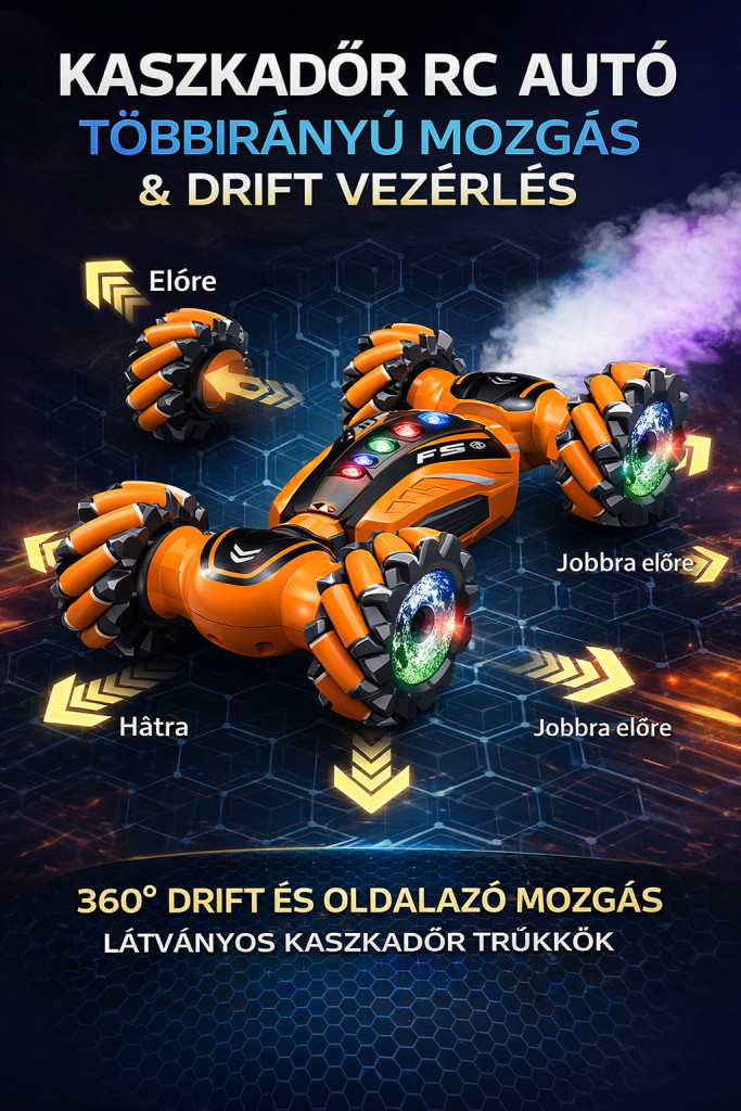 Távirányítós 4WD drift & stunt RC autó – LED világítással