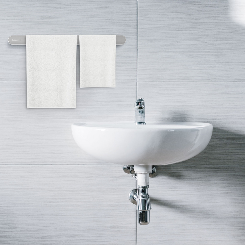 Erős öntapadós felülettel rendelkező törölközőtartó, amely bármilyen csempére, üvegre felragasztható. A letisztult design minden fürdőszoba enteriőrben jól mutat. Ideális lehet törölközőn kívül fürdőszobai papucs, mamusz helytakarékos tárolására is. Egyszerűen telepíthető: Tisztítsa meg és zsírtalanítsa a felületet, ragassza a megfelelő helyre a két korongot, majd felülről lefelé pattintsa rá a tartórudat.