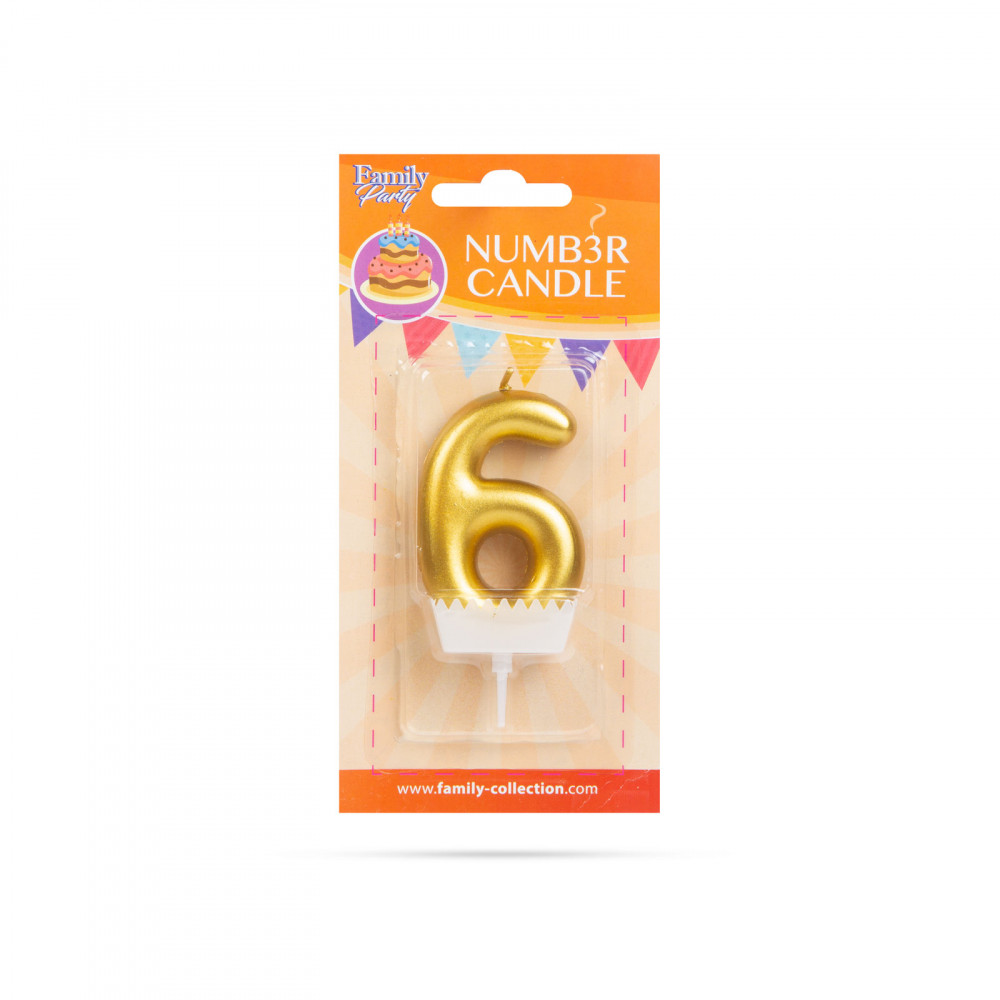 Tortagyertya - szám, 6 x 3 cm - arany - 6