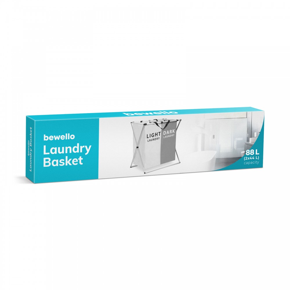 Modern megjelenésű, szövetből készült szennyestartó kosár több rekesszel. A masszív, fém váznak és a nagy befogadóképességnek köszönhetően akár több kilógram ruha, ágynemű tárolására is alkalmas. A rekeszek lehetővé teszik a különböző színű ruhák elkülönítését. Az egy mozdulattal történő összecsukás és a hordozófülek könnyű hordozhatóságot garantálnak.